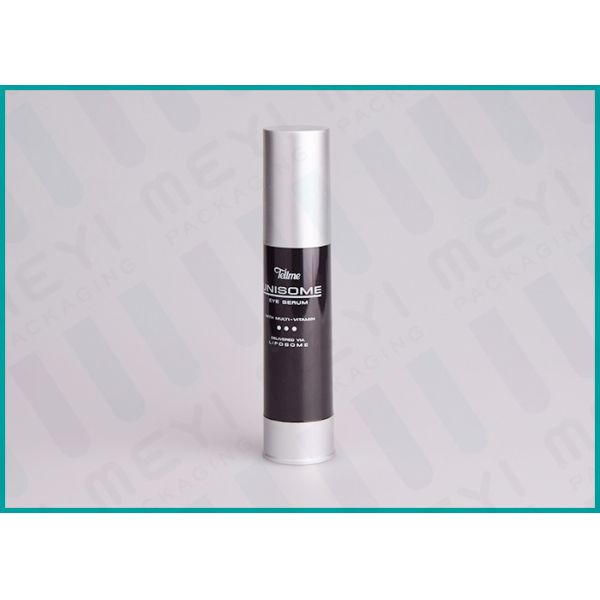 40 ML Black Cosmetic Pump Bottle With Glossy Matt Silver Pump And Cap Images |